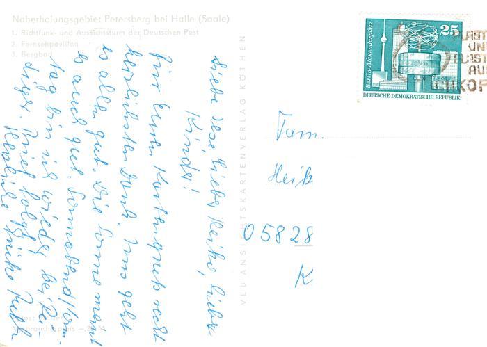73903387 Halle Saale Funk und Aussichtsturm der Deutschen Post Fernsehpavillon Bergbad postalisch gelaufen Erhaltung siehe scans [WerneD78] alte Postkarte Wern Katcode 11110015002000