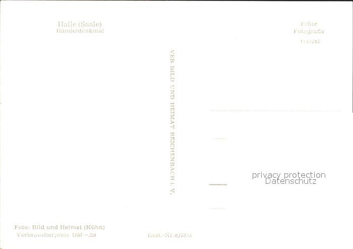 72314650 Halle Saale Haendeldenkmal postalisch nicht gelaufen Erhaltung siehe scans KatCode: 11110015002000