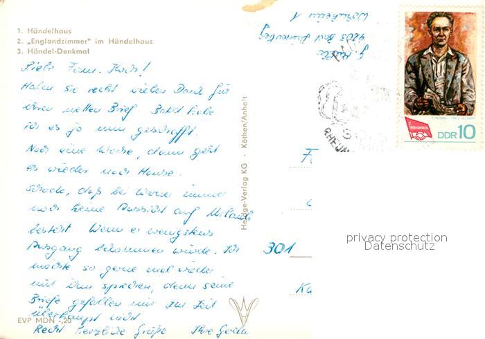 73100542 alte Postkarte Halle Saale Haendelhaus Englandzimmer Haendel Denkmal postalisch gelaufen Erhaltung siehe scans [KathaD81] KatCode: 11110015002000