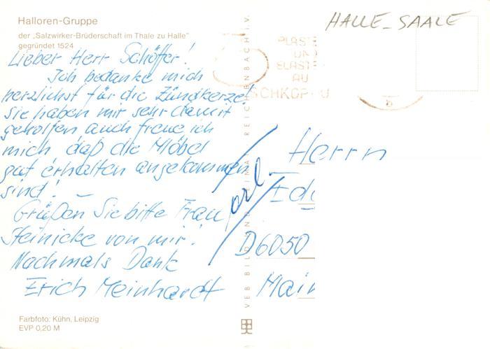 73906378 Halle Saale Halloren Gruppe der Salzwirker Bruderschaft postalisch gelaufen Erhaltung siehe scans [WerneD78] alte Postkarte Wern Katcode 11110015002000
