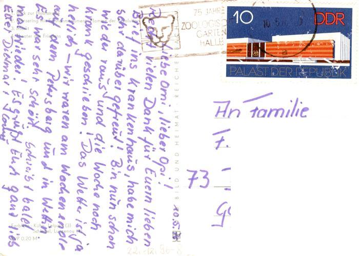 73900829 Halle Saale Hansering Fahnenmonument Markt Theater des Friedens postalisch gelaufen Erhaltung siehe scans [FriedD77] alte Postkarte Frie Katcode 11110015002000