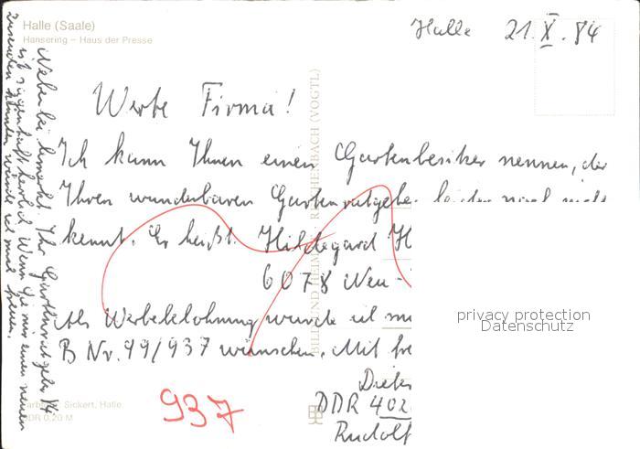 72205685 Halle Saale Hansering Haus der Presse Skulptur postalisch nicht gelaufen Erhaltung siehe scans KatCode: 11110015002000