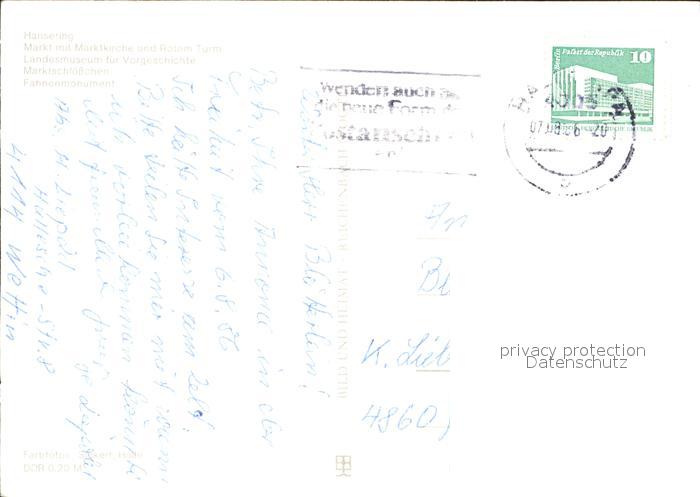 72354940 alte Postkarte Halle Saale Hansering Markt Kirche Roter Turm Landesmuseum Marktschloesschen Fahnenmonument postalisch gelaufen Erhaltung siehe scans KatCode: 11110015002000