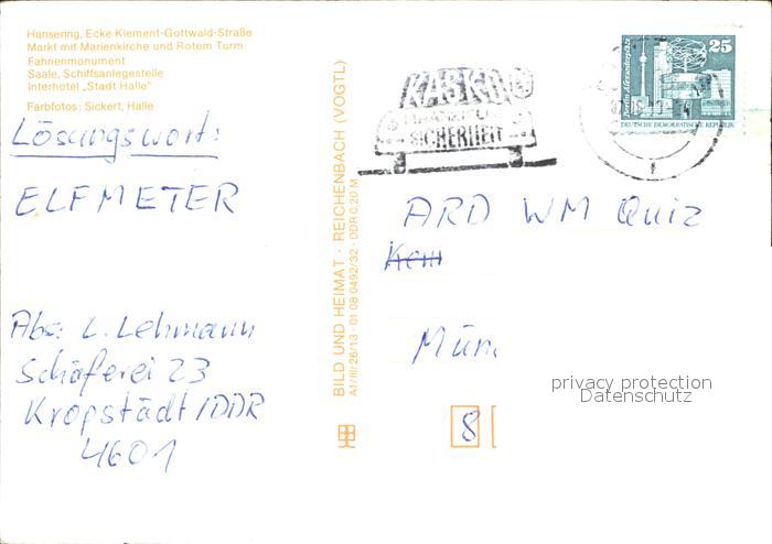72415458 alte Postkarte Halle Saale Hansering Markt Marienkirche Rotem Turm Interhotel Stadt Saale postalisch gelaufen Erhaltung siehe scans KatCode: 11110015002000