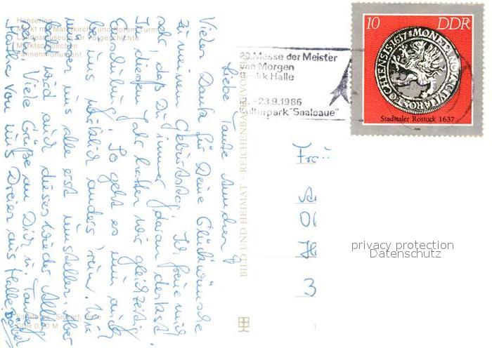 73059300 alte Postkarte Halle Saale Hansering Markt Marktkirche Roter Turm Landesmuseum Marktschloesschen Fahnenmonument postalisch gelaufen Erhaltung siehe scans [WerneD78] KatCode: 11110015002000