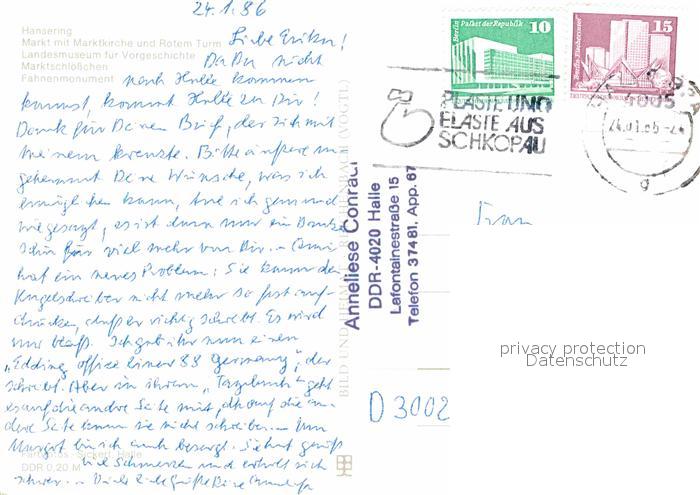 72700636 alte Postkarte Halle Saale Hansering Markt Marktkirche Roter Turm Marktschloesschen Fahnenmonument postalisch gelaufen Erhaltung siehe scans [WerneD78] KatCode: 11110015002000