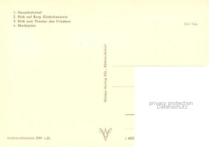 73032374 Halle Saale Hauptbahnhof Burg Giebichenstein Theater des Friedens Marktplatz postalisch nicht gelaufen Erhaltung siehe scans [WerneD78] KatCode: 11110015002000
