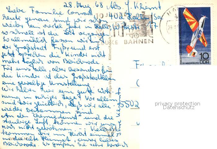 73082849 alte Postkarte Halle Saale Hauptbahnhof Marktplatz Burg Giebichenstein Bruecke Paedagogisches Institut postalisch gelaufen Erhaltung siehe scans [FriedD77] KatCode: 11110015002000