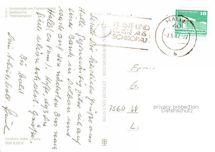 72779707 alte Postkarte Halle Saale Hochstrasse am Thaelmannplatz Hochhaeuser Saalepartie postalisch gelaufen Erhaltung siehe scans [FriedD77] KatCode: 11110015002000