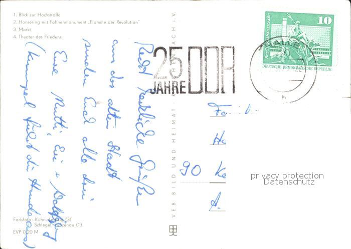 72017634 alte Postkarte Halle Saale Hochstrasse Hansering Fahnenmonument Markt Theater des Friedens postalisch gelaufen Erhaltung siehe scans KatCode: 11110015002000