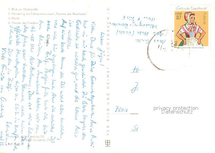 73105423 alte Postkarte Halle Saale Hochstrasse Hansering Markt Theater des Friedens postalisch gelaufen Erhaltung siehe scans [WerneD78] KatCode: 11110015002000