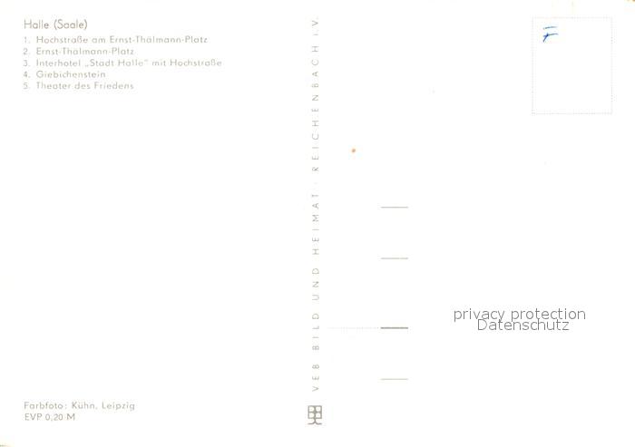 72996320 Halle Saale Hochstrasse Thaelmann Platz Interhotel Stadt Halle Giebichenstein Theater des Friedens postalisch nicht gelaufen Erhaltung siehe scans [WerneD78] KatCode: 11110015002000