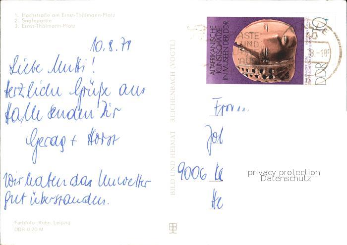 72017633 alte Postkarte Halle Saale Hochstrasse Thaelmann Platz Saalepartie postalisch gelaufen Erhaltung siehe scans KatCode: 11110015002000