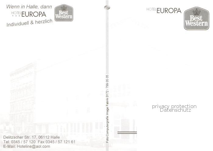 73838041 Halle Saale Hotel Europa Best Western postalisch nicht gelaufen Erhaltung siehe scans [FriedD77] KatCode: 11110015002000
