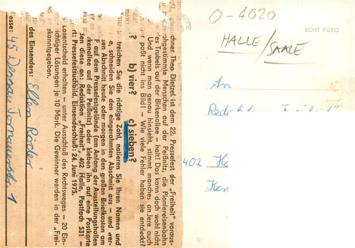 73924133 Halle Saale Interhotel Gera postalisch nicht gelaufen Erhaltung siehe scans [FriedD77] Frie Katcode 11110015002000
