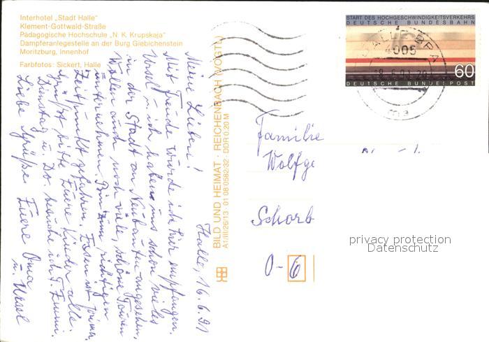 72455831 alte Postkarte Halle Saale Interhotel Klement Gottwald Strasse Paedagogische Hochschule Dampferanlegestelle postalisch gelaufen Erhaltung siehe scans KatCode: 11110015002000