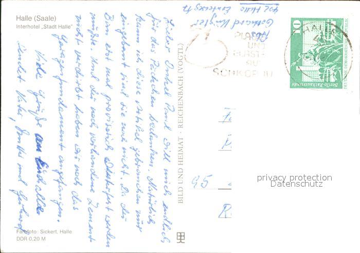 72493958 alte Postkarte Halle Saale Interhotel Stadt Halle postalisch gelaufen Erhaltung siehe scans KatCode: 11110015002000