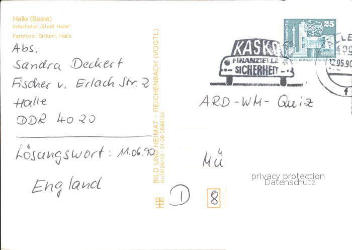 72381498 alte Postkarte Halle Saale Interhotel Stadt Halle postalisch gelaufen Erhaltung siehe scans KatCode: 11110015002000