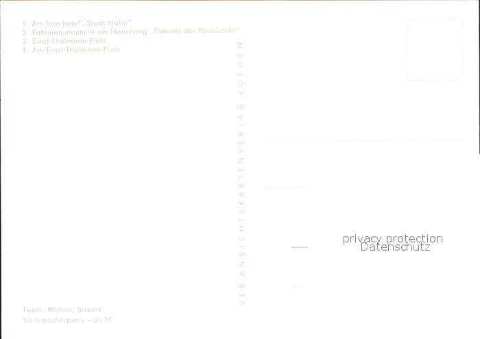 72354740 Halle Saale Interhotel Stadt Halle Fahnenmonument Flamme der Revolution Hansering Thaelmann Platz postalisch nicht gelaufen Erhaltung siehe scans KatCode: 11110015002000
