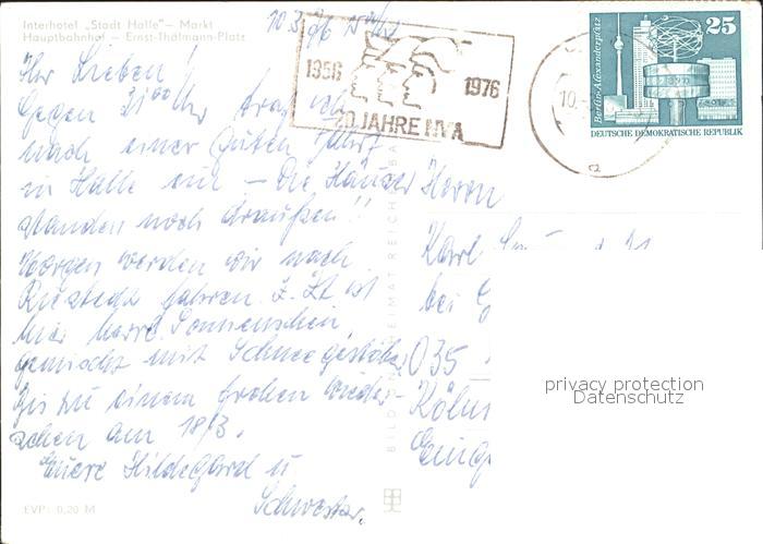 72138753 alte Postkarte Halle Saale Interhotel Stadt Halle Markt Hauptbahnhof Thaelmann Platz postalisch gelaufen Erhaltung siehe scans KatCode: 11110015002000