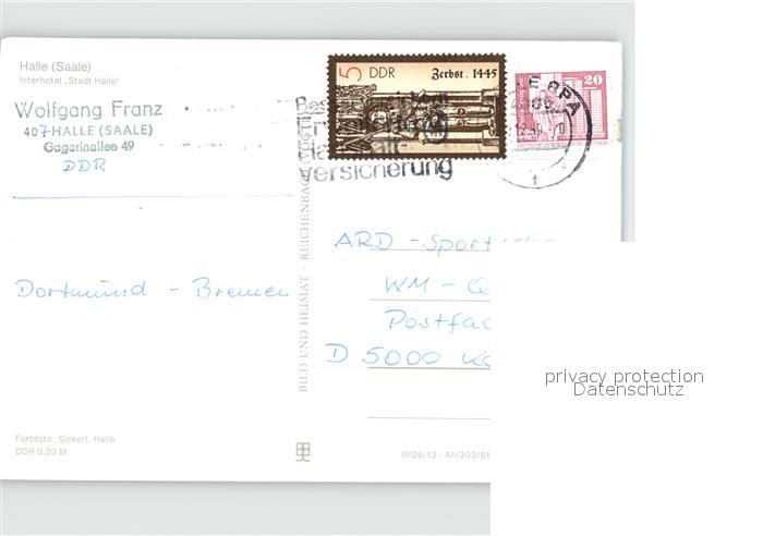 72431757 alte Postkarte Halle Saale Interhotel postalisch gelaufen Erhaltung siehe scans KatCode: 11110015002000