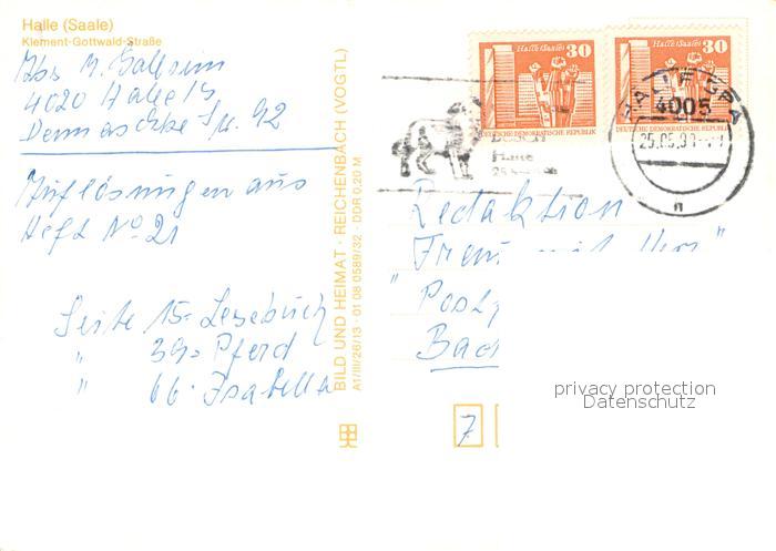 73656126 alte Postkarte Halle Saale Klement Gottwald Strasse postalisch gelaufen Erhaltung siehe scans [FriedD77] KatCode: 11110015002000