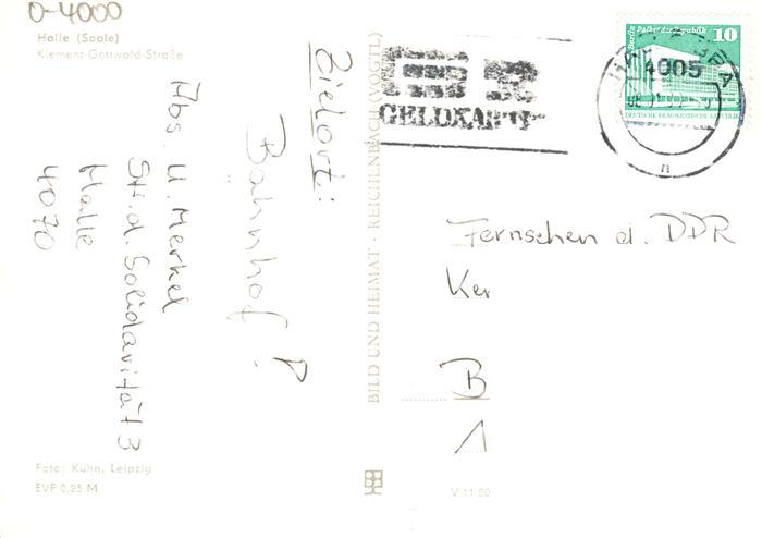 73913381 Halle Saale Klement Gottwald Strasse postalisch gelaufen Erhaltung siehe scans [FriedD77] alte Postkarte Frie Katcode 11110015002000