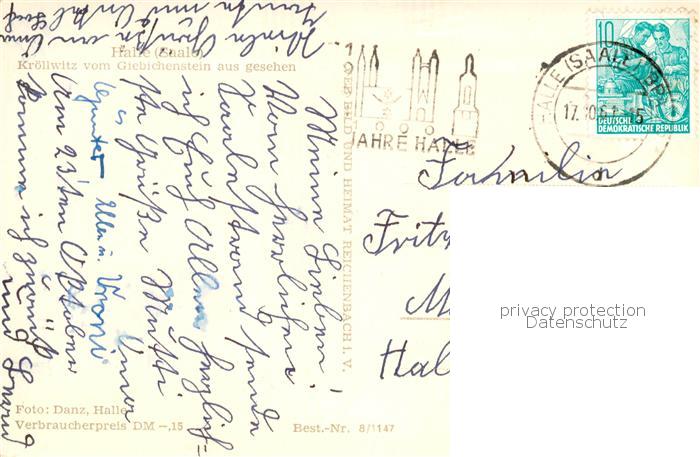 73833960 alte Postkarte Halle Saale Kroellwitz vom Giebichenstein aus gesehen postalisch gelaufen Erhaltung siehe scans [WerneD78] KatCode: 11110015002000