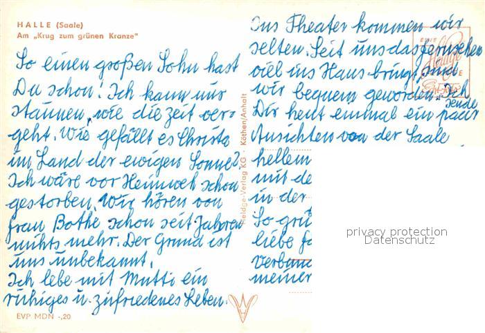 72644735 Halle Saale Krug zum gruenen Kranze postalisch nicht gelaufen Erhaltung siehe scans [AndreD76] KatCode: 11110015002000