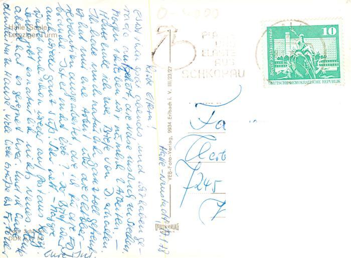 73903384 Halle Saale Leipziger Turm postalisch gelaufen Erhaltung siehe scans [WerneD78] alte Postkarte Wern Katcode 11110015002000