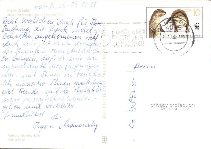 72370186 alte Postkarte Halle Saale Markt Marktkirche Rote Turm postalisch gelaufen Erhaltung siehe scans KatCode: 11110015002000