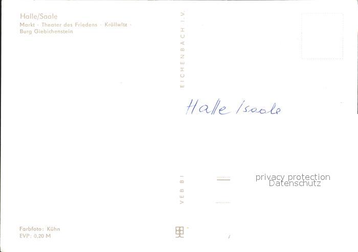 72373448 Halle Saale Markt Theater des Friedens Kroellwitz Burg Giebichenstein postalisch nicht gelaufen Erhaltung siehe scans KatCode: 11110015002000