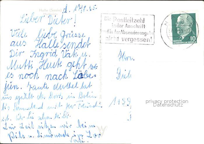 72382664 alte Postkarte Halle Saale Marktplatz postalisch gelaufen Erhaltung siehe scans KatCode: 11110015002000