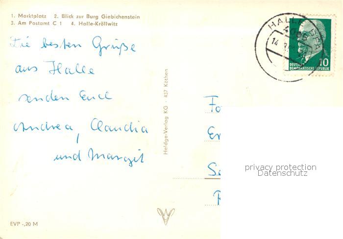 73608717 alte Postkarte Halle Saale Marktplatz Blick zur Burg Giebichenstein Am Postamt Halle-Kroellwitz postalisch gelaufen Erhaltung siehe scans [WerneD78] KatCode: 11110015002000
