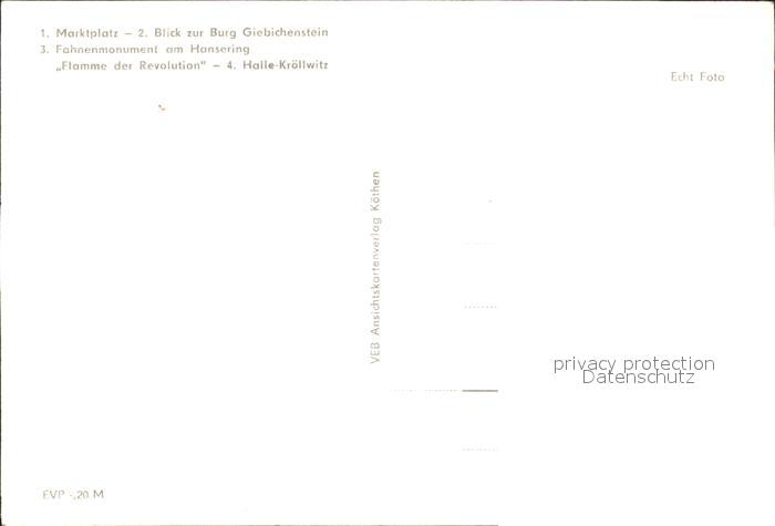 71983013 Halle Saale Marktplatz Burg Giebichenstein Fahnenmonument postalisch nicht gelaufen Erhaltung siehe scans KatCode: 11110015002000