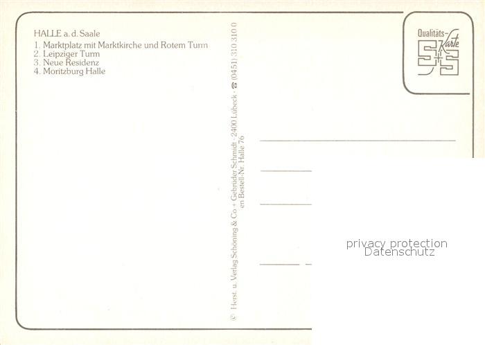 73216782 Halle Saale Marktplatz Kirche Roter Turm Leipziger Turm Residenz Moritzburg Halle Chronik Wappen postalisch nicht gelaufen Erhaltung siehe scans [FriedD77] KatCode: 11110015002000