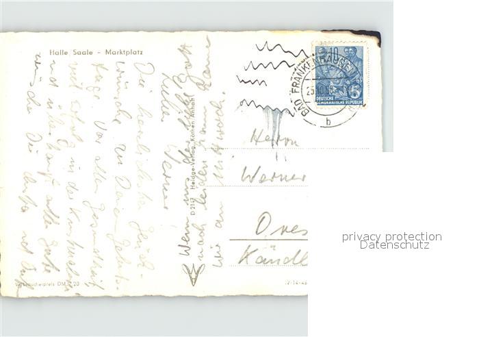 72413116 alte Postkarte Halle Saale Marktplatz Marktkirche Denkmal Roter Turm postalisch gelaufen Erhaltung siehe scans KatCode: 11110015002000