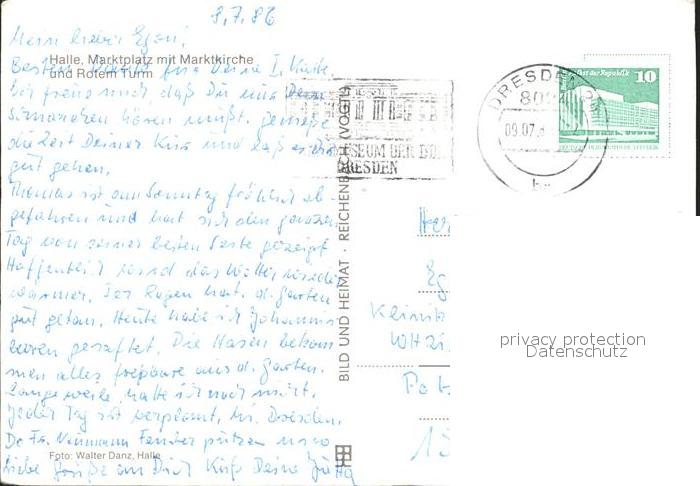 72317619 alte Postkarte Halle Saale Marktplatz mit Kirche und Rotem Turm postalisch gelaufen Erhaltung siehe scans KatCode: 11110015002000