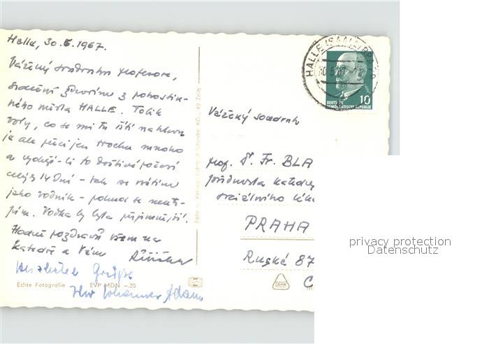 71900619 alte Postkarte Halle Saale Marktplatz Theater des Friedens Hauptbahnhof postalisch gelaufen Erhaltung siehe scans KatCode: 11110015002000