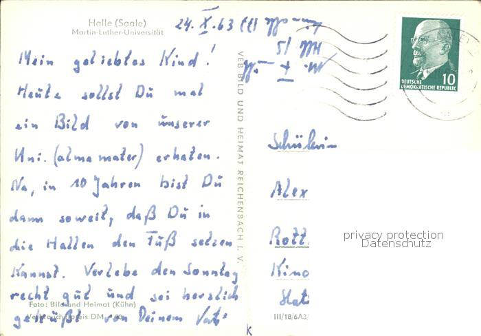 72060660 alte Postkarte Halle Saale Martin Luther Universitaet postalisch gelaufen Erhaltung siehe scans KatCode: 11110015002000