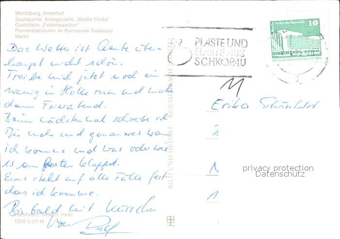 72280395 alte Postkarte Halle Saale Motitzburg Innenhof Saalepartie Anlegestelle Weisse Flotte Gaststaette Felsenpavillon postalisch gelaufen Erhaltung siehe scans KatCode: 11110015002000