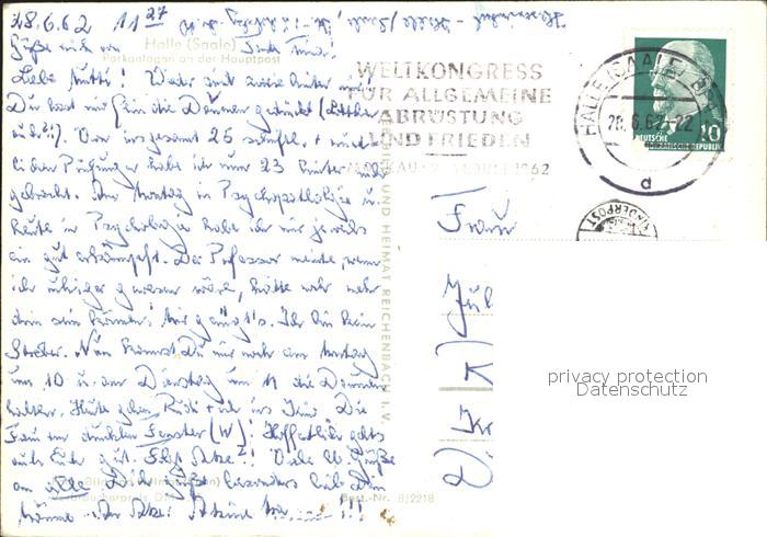 72356913 alte Postkarte Halle Saale Parkanlagen an der Hauptpost postalisch gelaufen Erhaltung siehe scans KatCode: 11110015002000