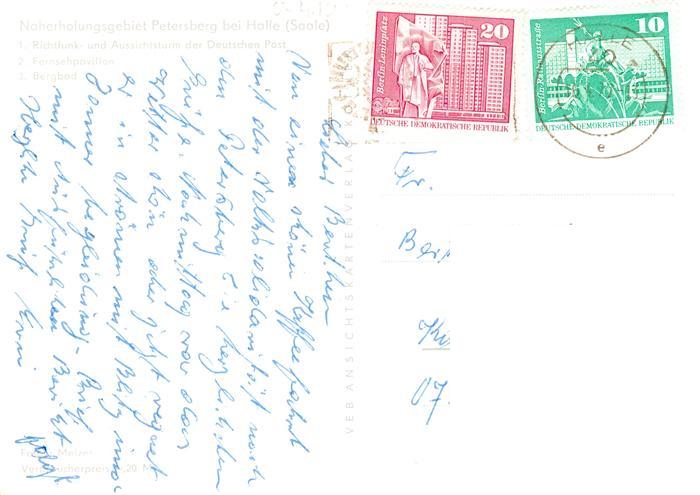 73948039 Halle Saale Petersberg Aussichtsturm der DDR Fernsehpavillon Bergbad postalisch gelaufen Erhaltung siehe scans [WerneD78] alte Postkarte Wern Katcode 11110015002000