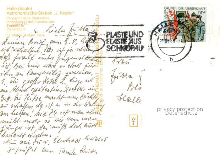 73030026 alte Postkarte Halle Saale Polytechnische Oberschule Planetarium postalisch gelaufen Erhaltung siehe scans [KathaD81] KatCode: 11110015002000