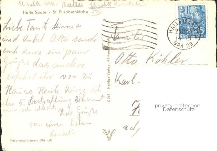 72046789 alte Postkarte Halle Saale St Elisabethkirche postalisch gelaufen Erhaltung siehe scans KatCode: 11110015002000