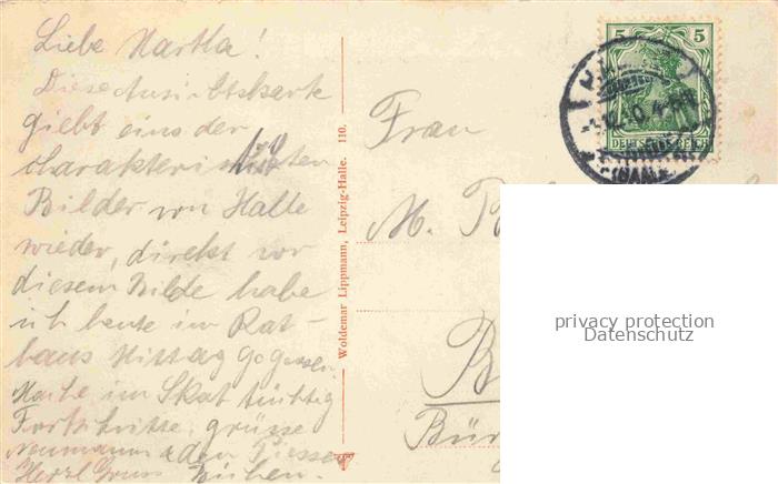 74035611 alte Postkarte HALLE SAALE Stadtpanorama Blick auf den Markt und die 5 Tuerme postalisch gelaufen Erhaltung siehe scans [FriedD77] KatCode: 11110015002000