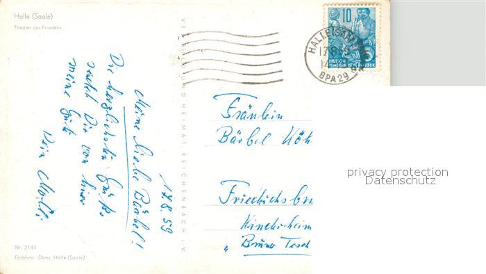 73127717 alte Postkarte Halle Saale Theater des Friedens postalisch gelaufen Erhaltung siehe scans [KathaD81] KatCode: 11110015002000