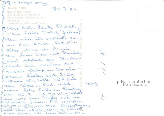 72279793 Halle Saale Theater des Friedens Burg Giebichenstein Klement Gottwald Strasse Thaelmannplatz postalisch nicht gelaufen Erhaltung siehe scans KatCode: 11110015002000