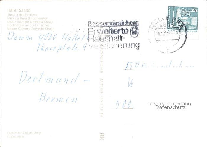 72392556 alte Postkarte Halle Saale Theater des Friedens Burg Giebichenstein Klement-Gottwald-Strasse postalisch gelaufen Erhaltung siehe scans KatCode: 11110015002000