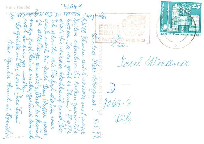 73877840 alte Postkarte Halle Saale Theater des Friedens Fontaene postalisch gelaufen Erhaltung siehe scans [WerneD78] KatCode: 11110015002000